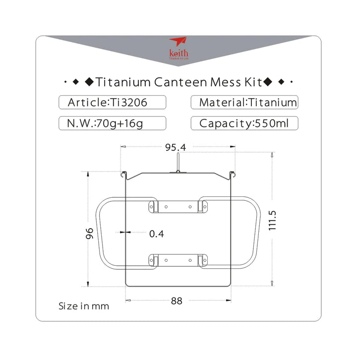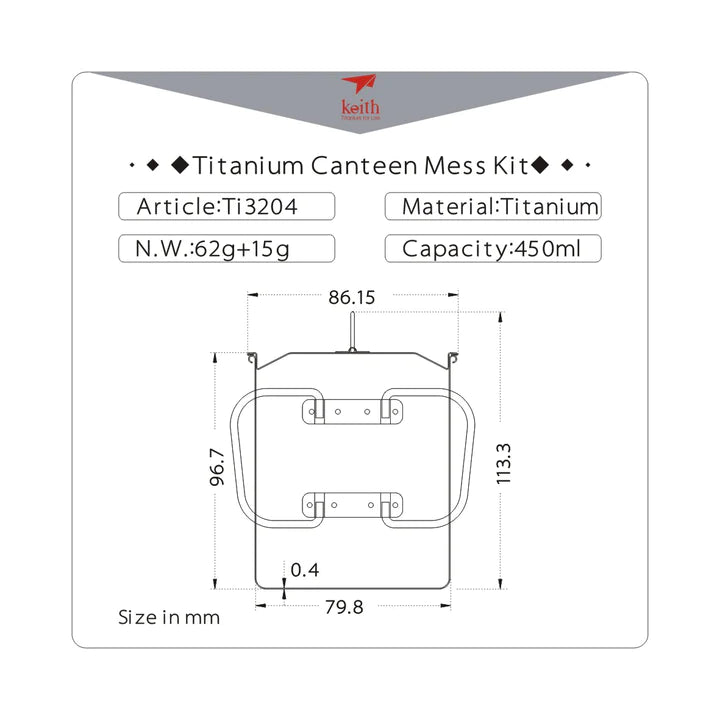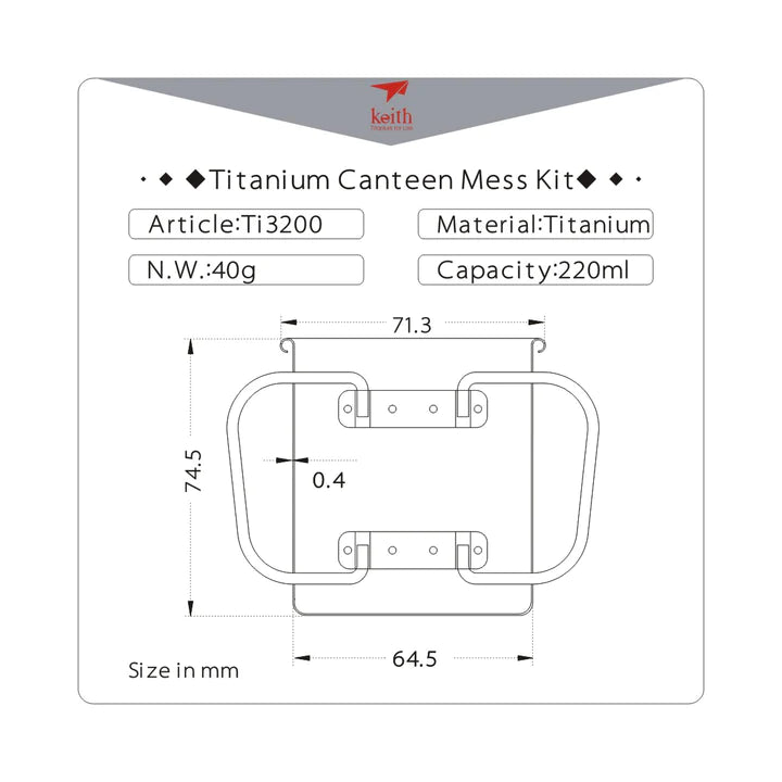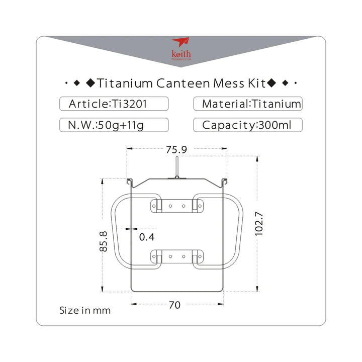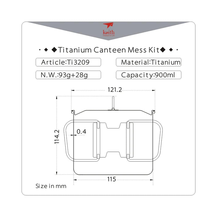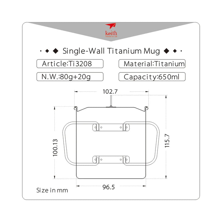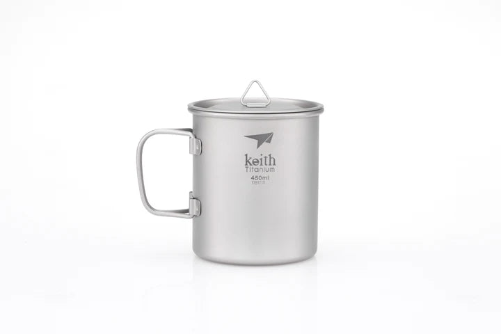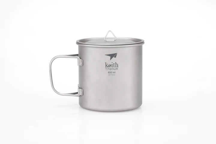 Keith-单壁钛制马克杯,带折叠手柄和盖子 200/300/450/550/650/900ml