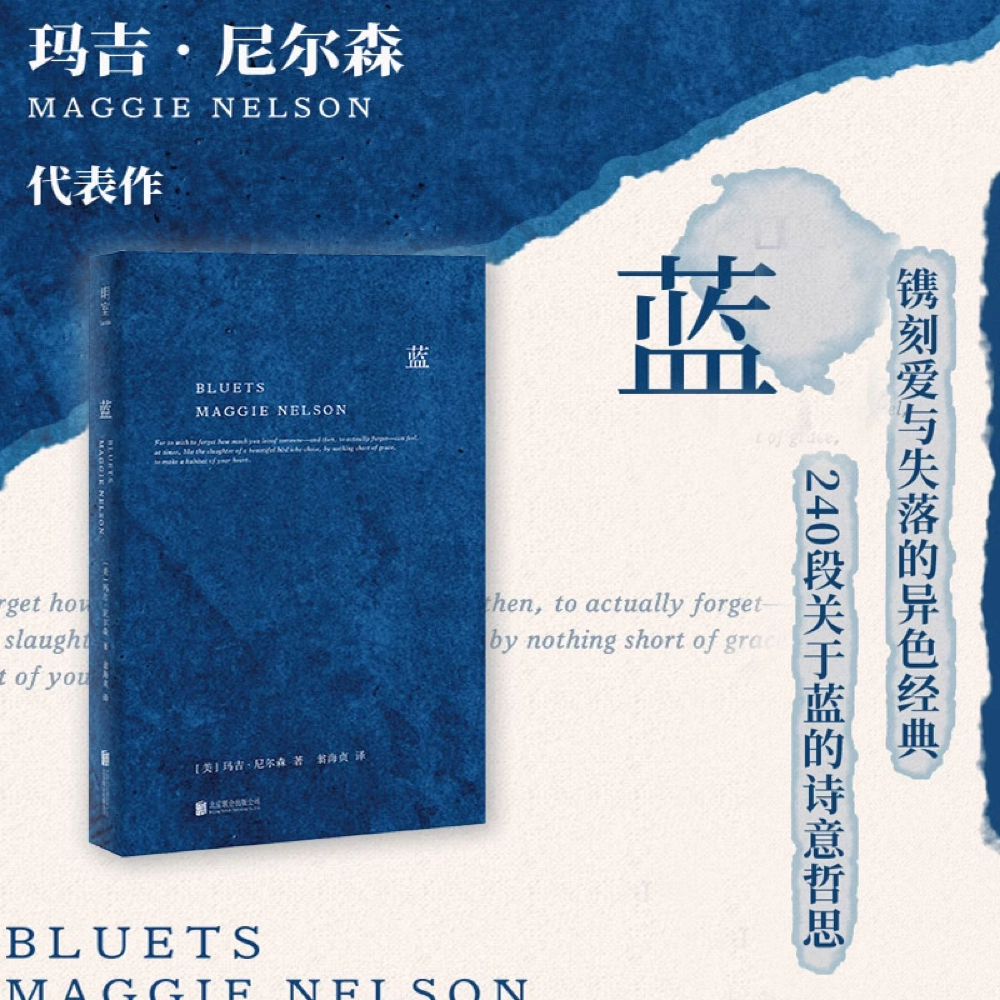 ※玛吉·尼尔森被认为是当代最杰出的散文家之一,她的写作颠覆了常见的文学分类,融合了学术、散文、诗歌等多种体裁风格。《蓝》是她最为畅销和最被广泛阅读的作品,被视为“21世纪的《恋人絮语》”,曾被入选Bookforum“过去20年最好的10本书”。