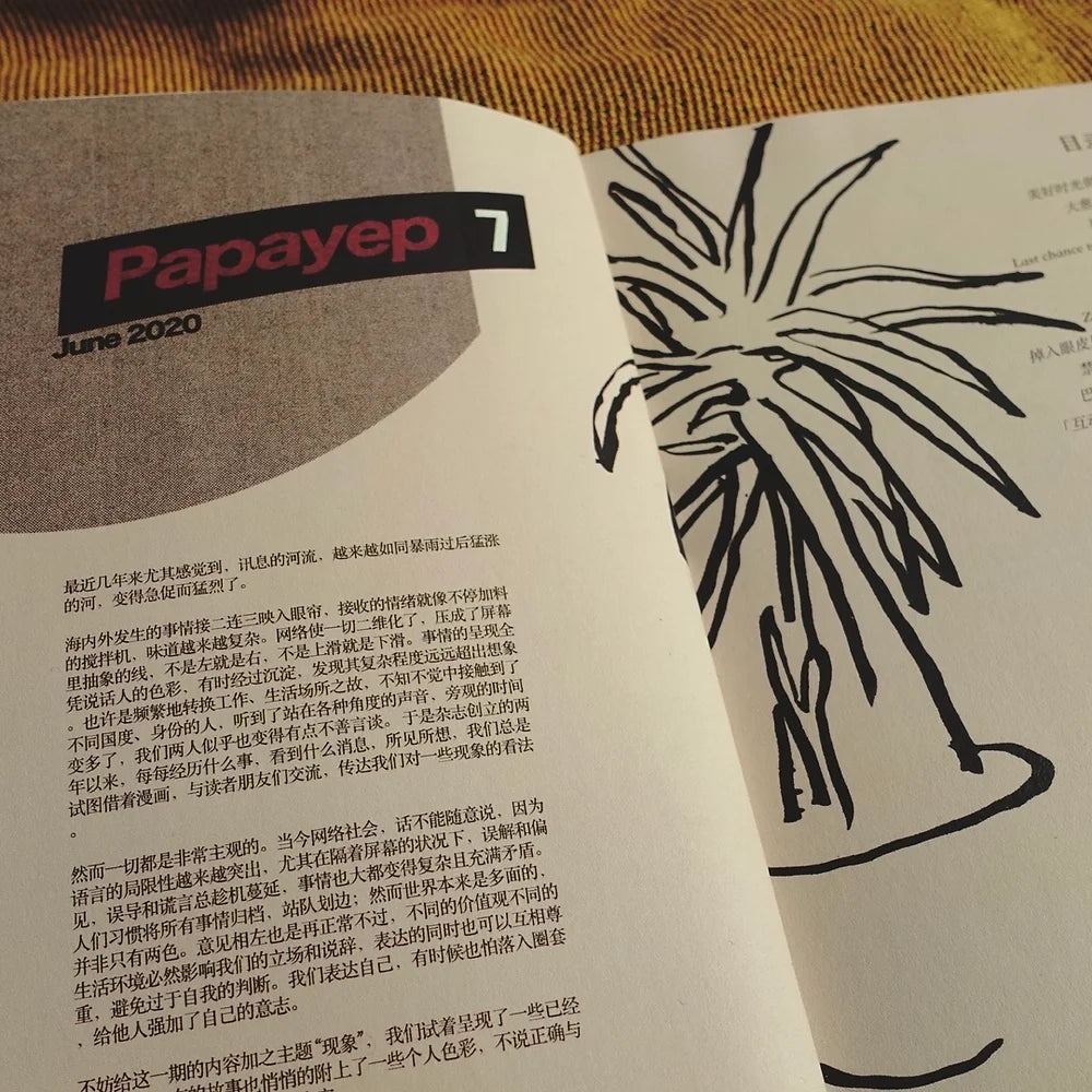 Papayep志。从2017年创立至今有七期。杂志由中短篇幅漫画和插画、图活感受和种种突发的奇思妙想,不追赶时代,但关注时事;不强调风格,但尽可能突破。