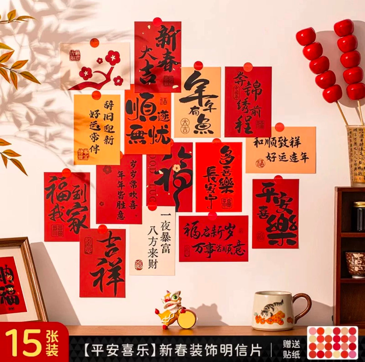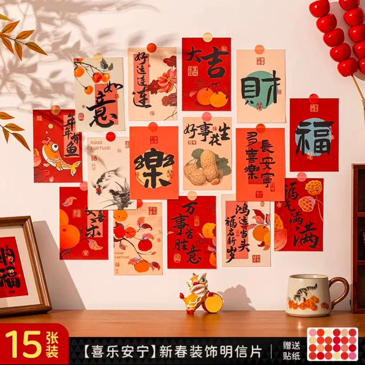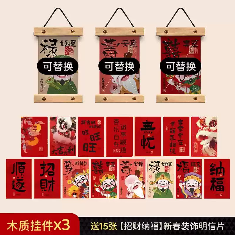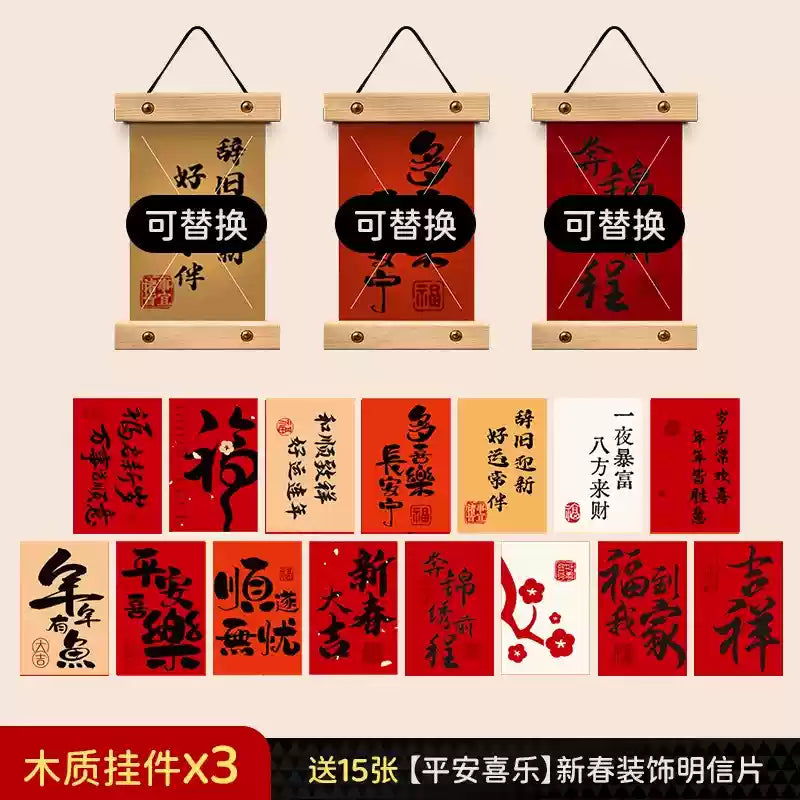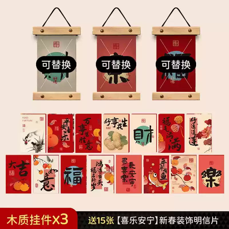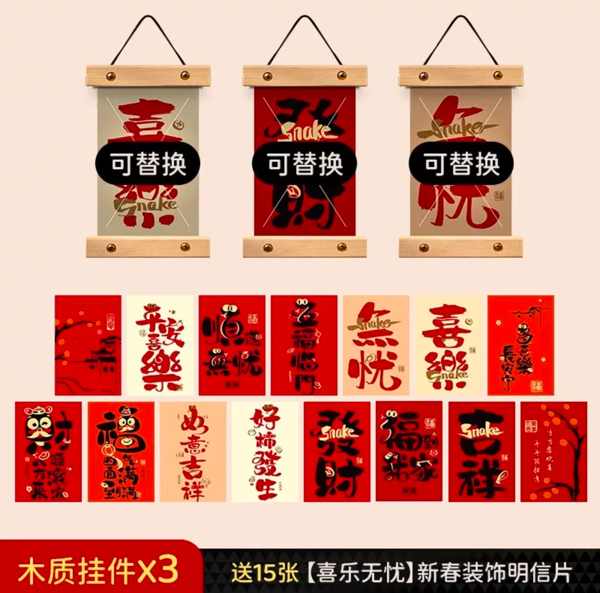 【Pendant 挂件】2025年中国风文字励志墙贴祝福明信片装饰文创木挂件3套(卡纸可替换)
