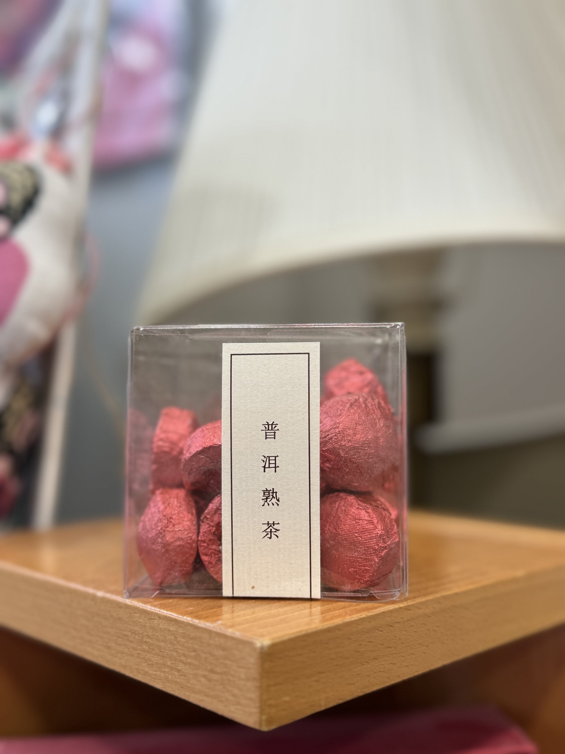 Pu Er shu cha, May 2016, in small nest, 100 g in transparent box.