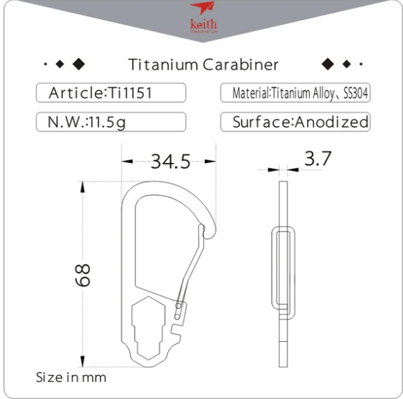 Ce mousqueton est en titane pur sans doublure et revêtement de haute qualité. C'est insipide, insipide et non toxique. Conçu à l'origine pour la randonnée, le camping et les voyages. Le titane est ultra léger et ultra résistant ; il est respectueux de l’environnement, biocompatible et inhibiteur de bactéries ; il est également extrêmement hypoallergénique et possède une excellente résistance à la corrosion.