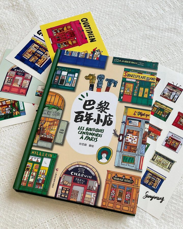 "Une boutique du centenaire à Paris" est une collection d'illustrations et de textes dessinés à la main sur le thème des boutiques centenaires des rues de Paris que l'illustrateur français Sun Yimeng a passé cinq ans à collectionner.