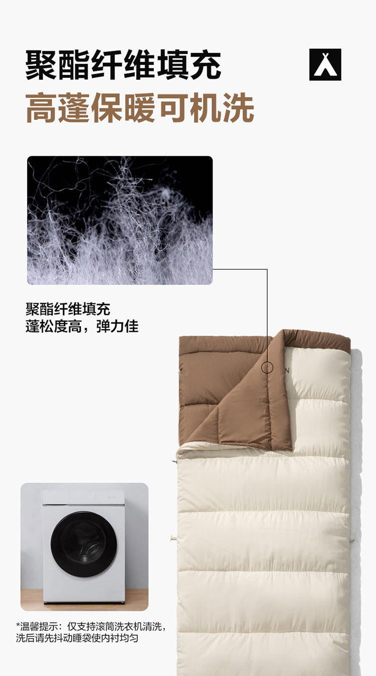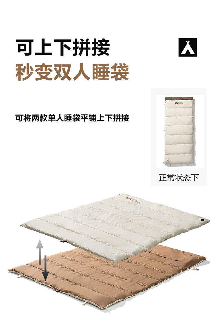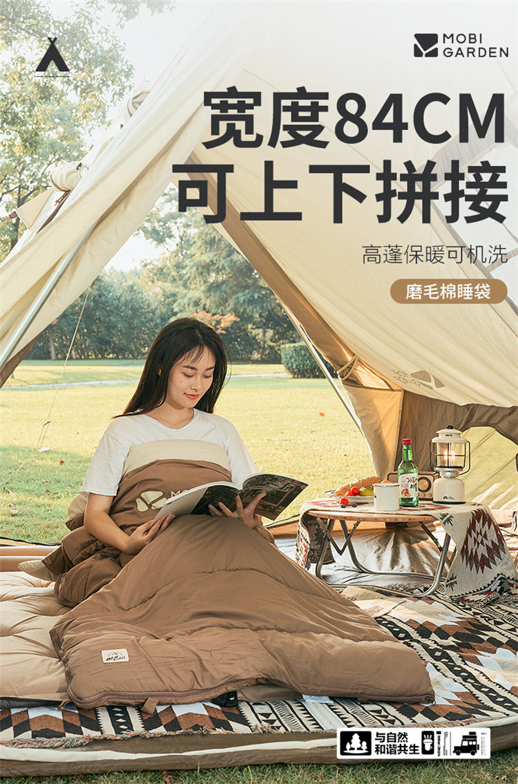 Le modèle unique de sac de couchage en coton brossé Makoto Di-Crescent offre un sommeil réparateur et plein de vitalité