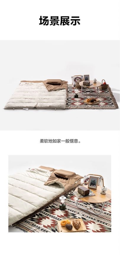 2) Peut être posé à plat et utilisé comme couette/tapis de couchage.