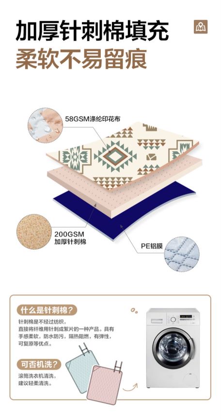 3. Rembourrage en coton aiguilleté épais, doux et ne convient pas pour laisser des marques, ultrasons pour solidifier le coton, lavable en machine ;