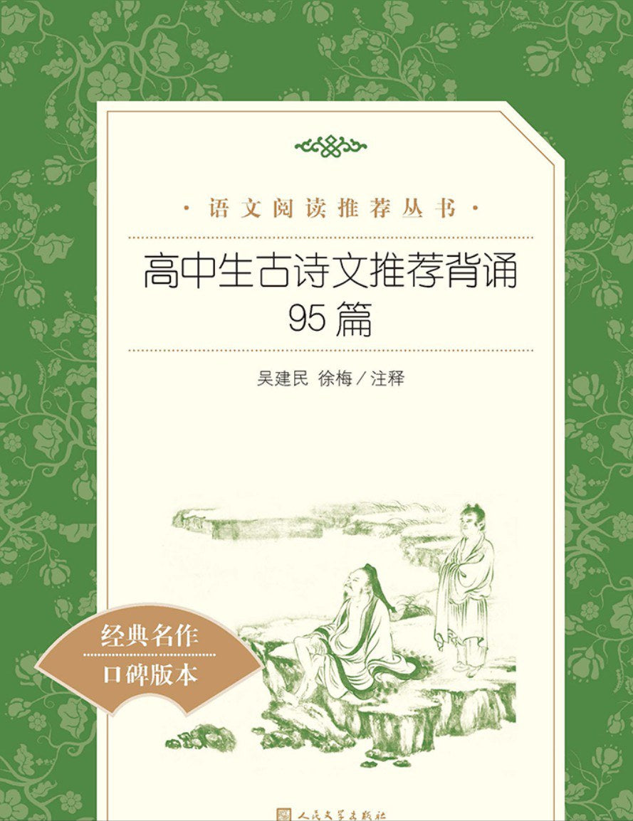 « 95 récitations recommandées de poèmes anciens pour les lycéens » contient 95 poèmes et essais anciens rassemblés dans le manuel « Langue chinoise » Sous les poèmes sélectionnés, il y a trois parties de l'introduction de l'auteur, des annotations et des interprétations pour l'orientation et l'apprentissage. L'introduction de l'auteur est une introduction pertinente à l'auteur et à ses œuvres. La partie annotation explique principalement certains mots et allusions difficiles, et les explications doivent être précises et concises. La partie interprétation s'efforce de saisir le contenu et les caractéristiques principales de l'article pour analyse, afin d'aider les lecteurs à élargir leur réflexion et à mieux comprendre le contenu idéologique et les caractéristiques artistiques de l'article.