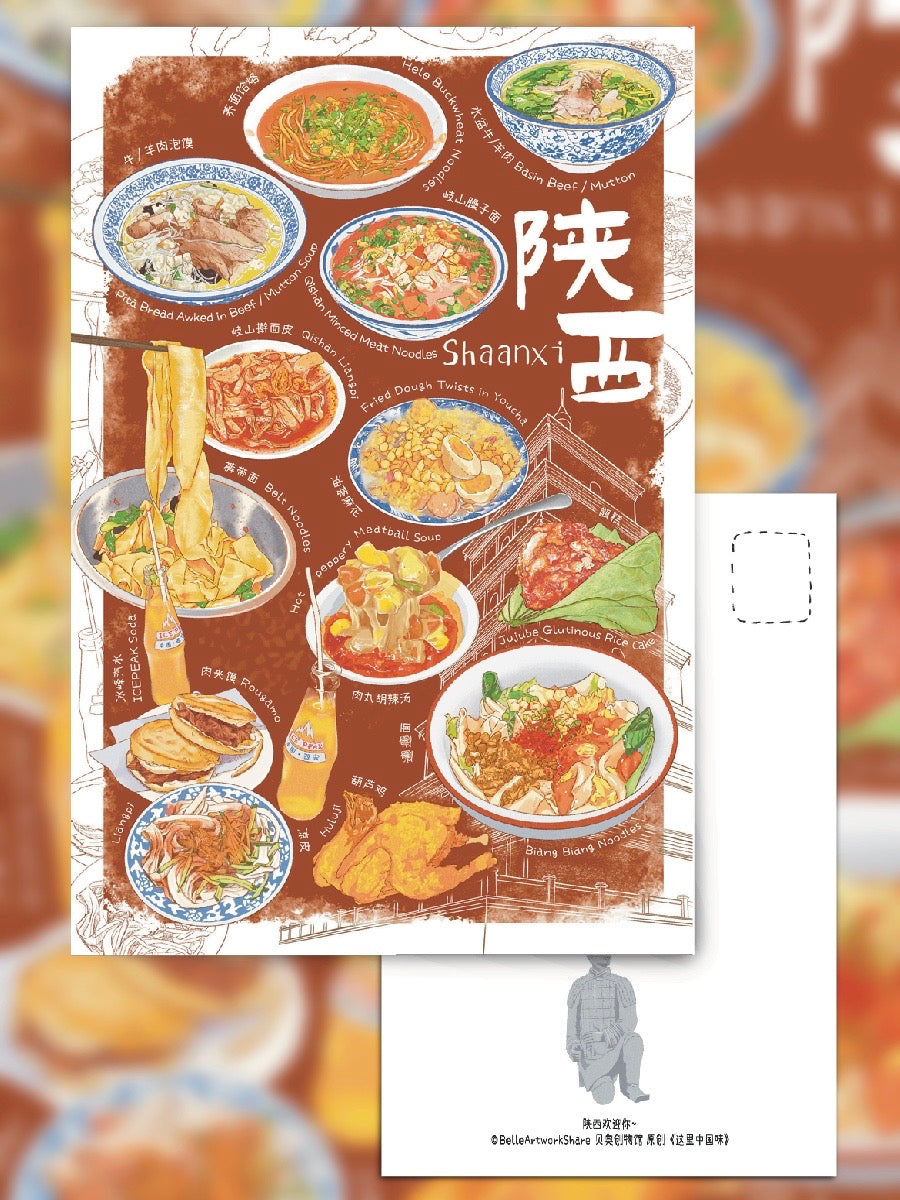 « A Taste of China Here » est une série d'illustrations illustrées faisant suite au « French Food Diary » qui met spécifiquement en valeur les délices de diverses provinces et villes de Chine, avec des annotations bilingues en chinois et en anglais. L'inspiration vient de la recherche sur la culture alimentaire locale et du contenu d'exploration des magasins d'alimentation.