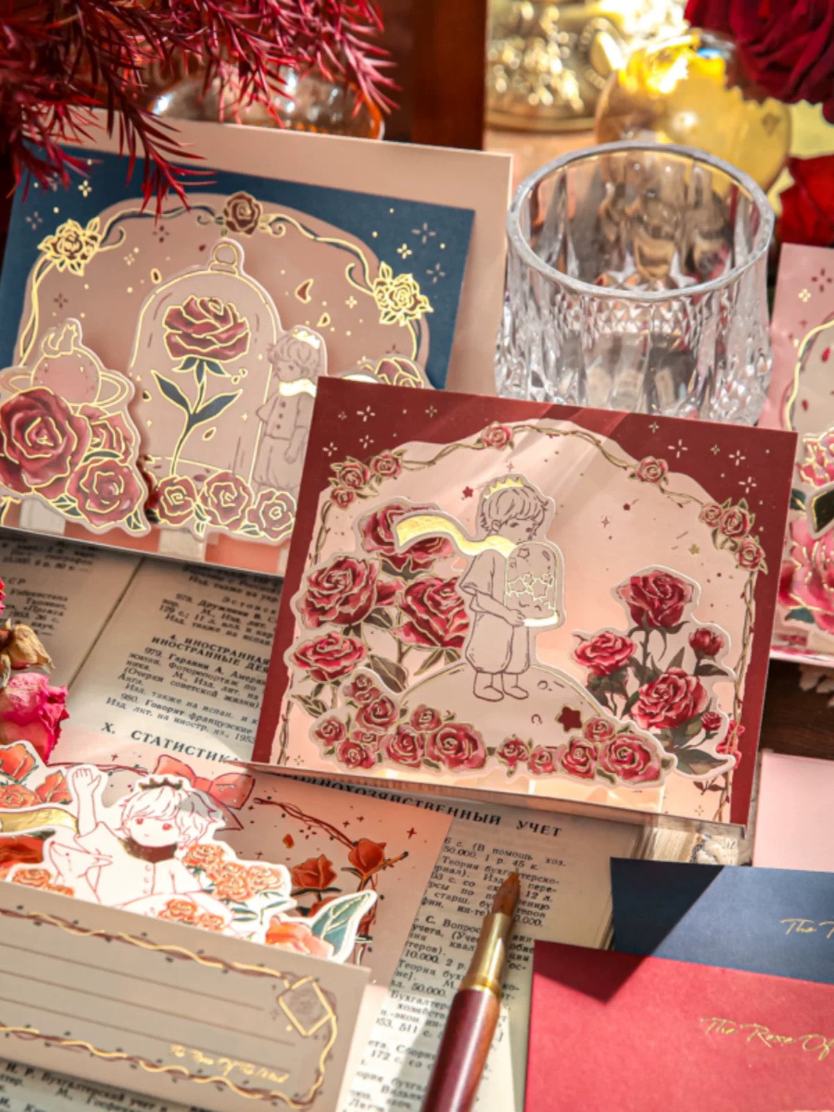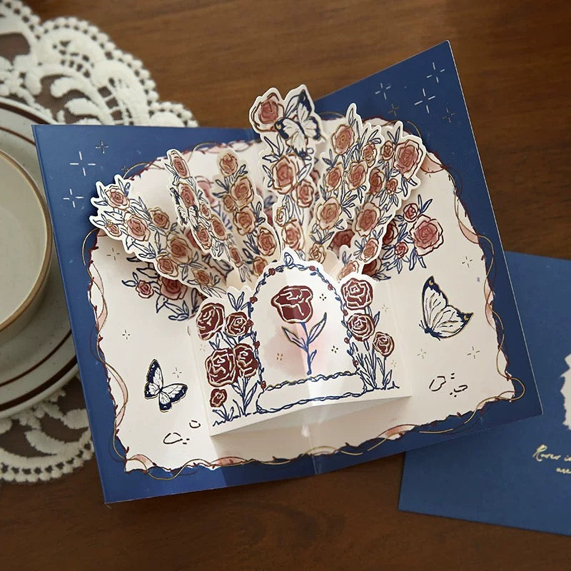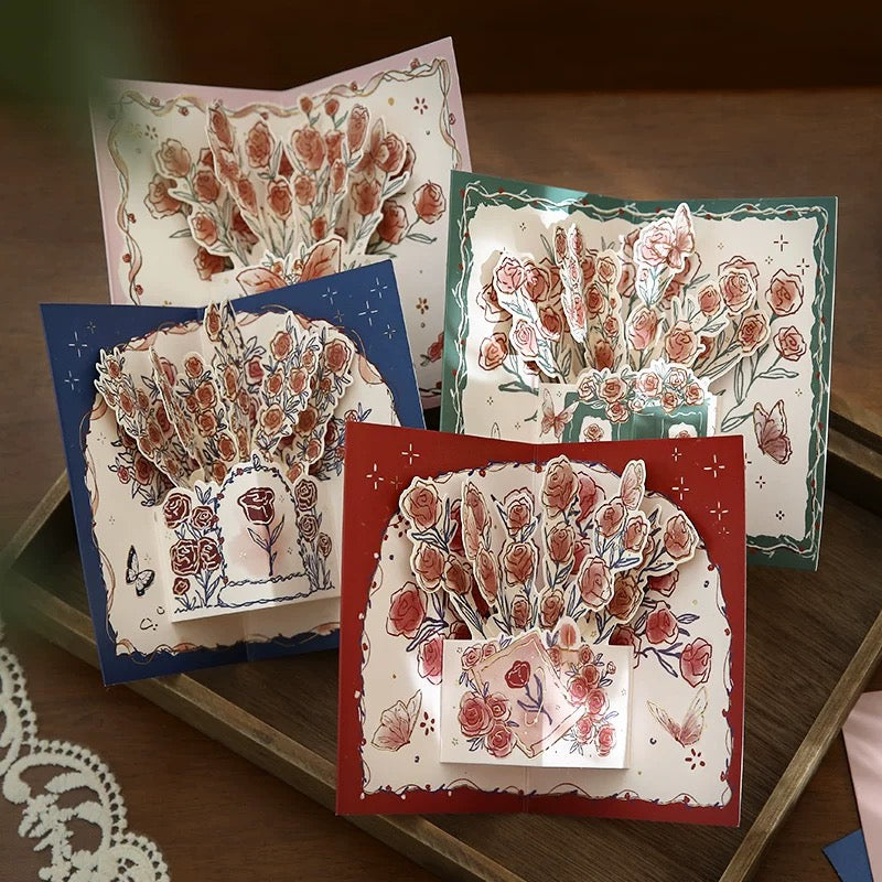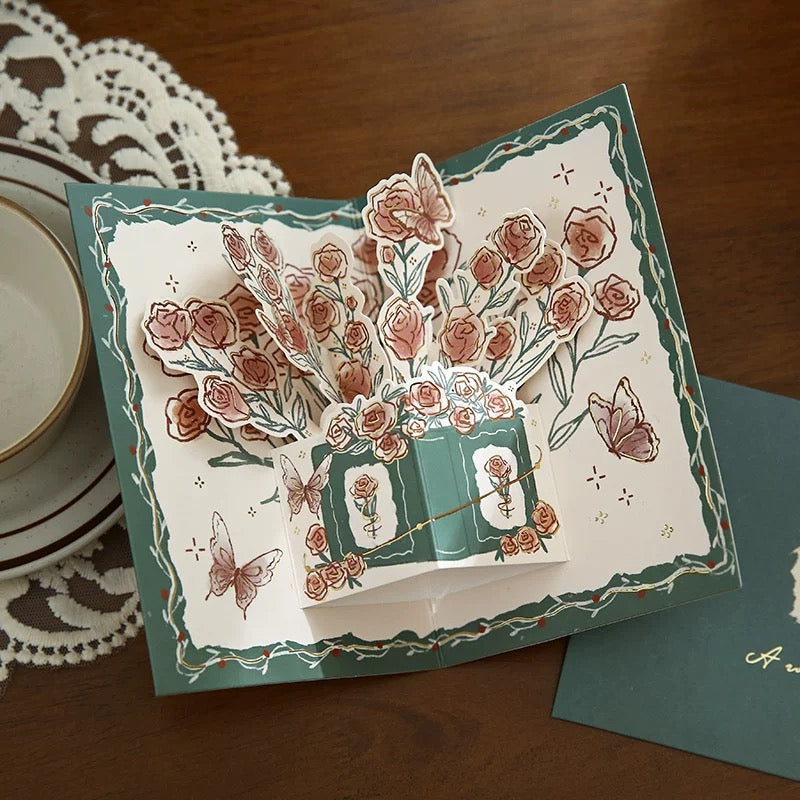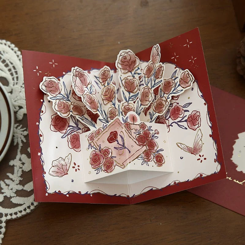 [Carte de voeux Carte de voeux] Carte de voeux rose tridimensionnelle, carte de bénédiction de marquage à chaud de style vintage de haute qualité