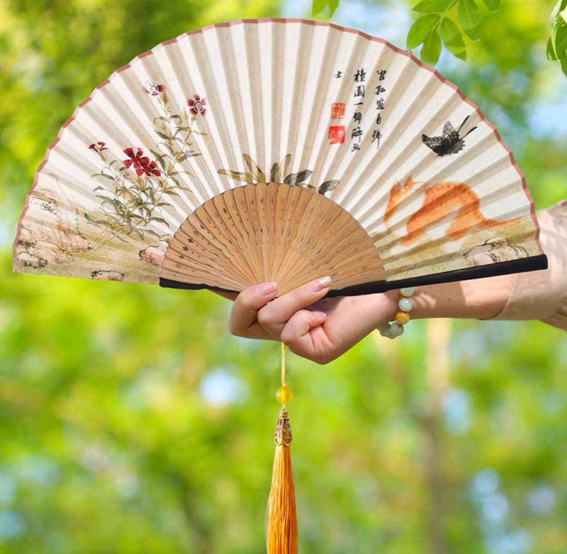 【Éventail pliable de style traditionnel chinois】Éventail pliant de style ancien