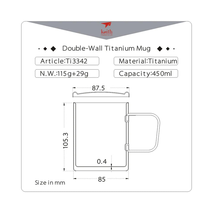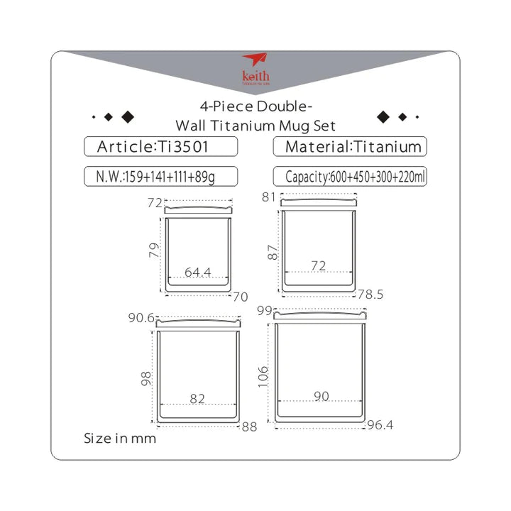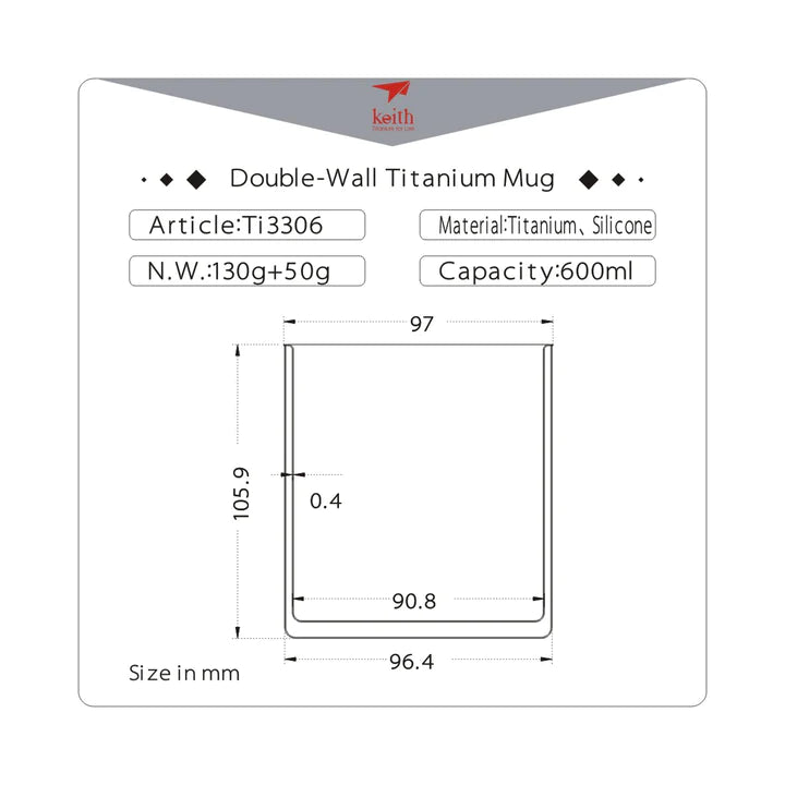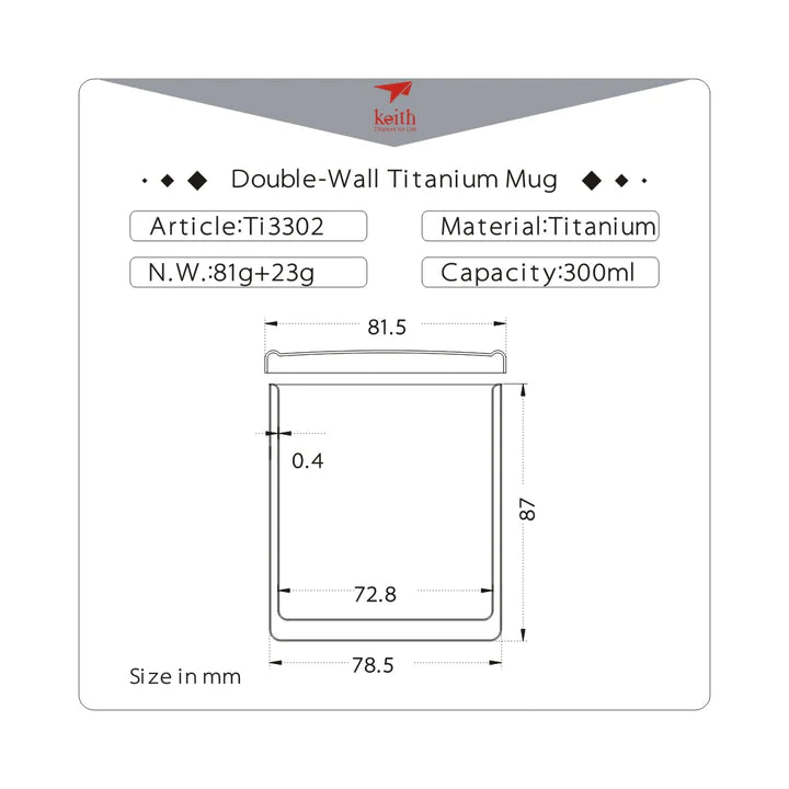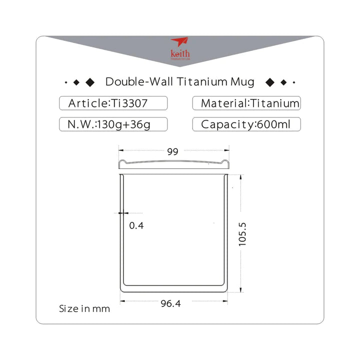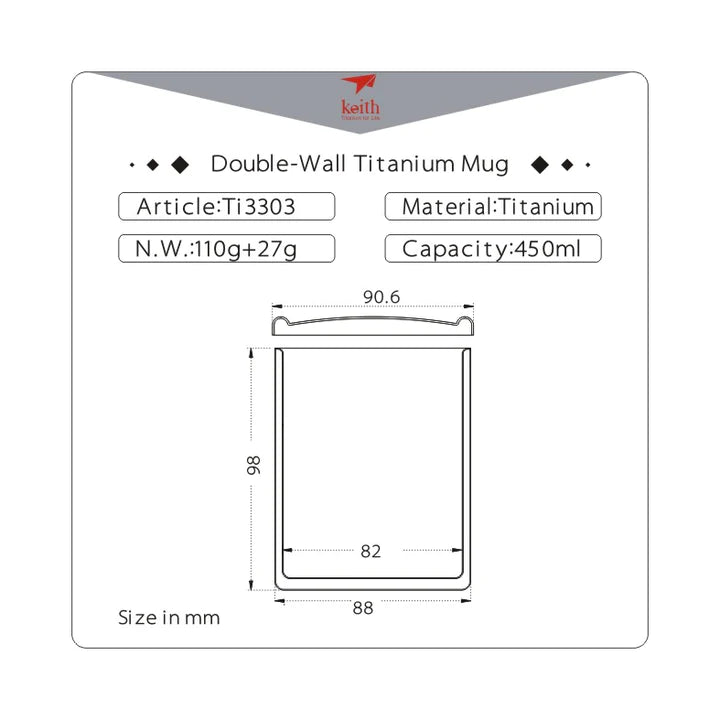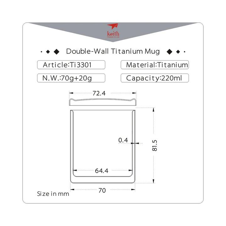 Keith-Gobelet en titane double paroi avec couvercle 220/300/450/600