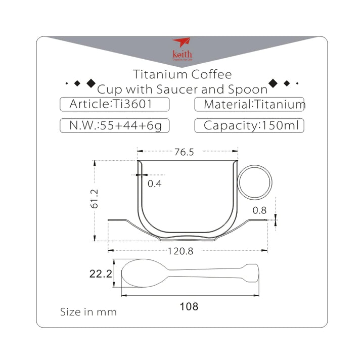 Keith-tasse à café + soucoupe + cuillère 150 ml