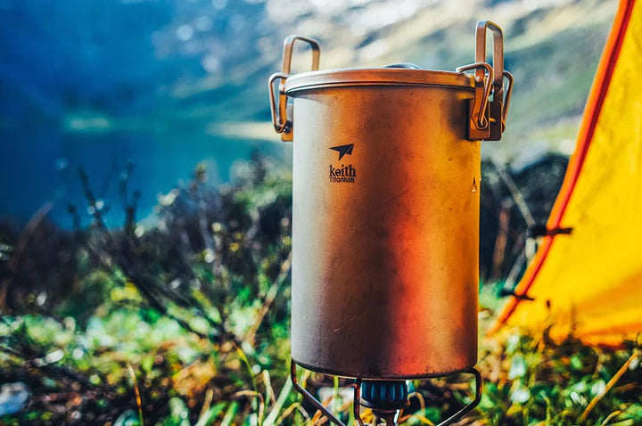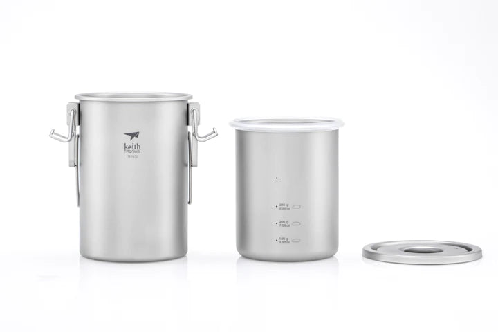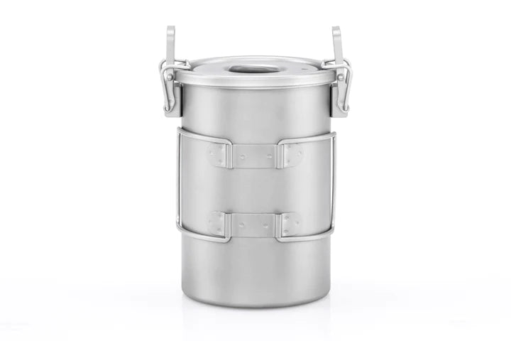 Pour les amateurs de produits esthétiques et de qualité ou pour tous ceux qui recherchent une charge minimale. Cuisinière multifonction entièrement en titane. 256 ml seulement 900 g. Matériau noble et durable, sain et ne nécessitant aucun traitement, polissage de surface ni scellement en silicone de qualité alimentaire. Matériau biocompatible, inoffensif pour le corps humain. La poêle est enveloppée dans un couvercle en filet.