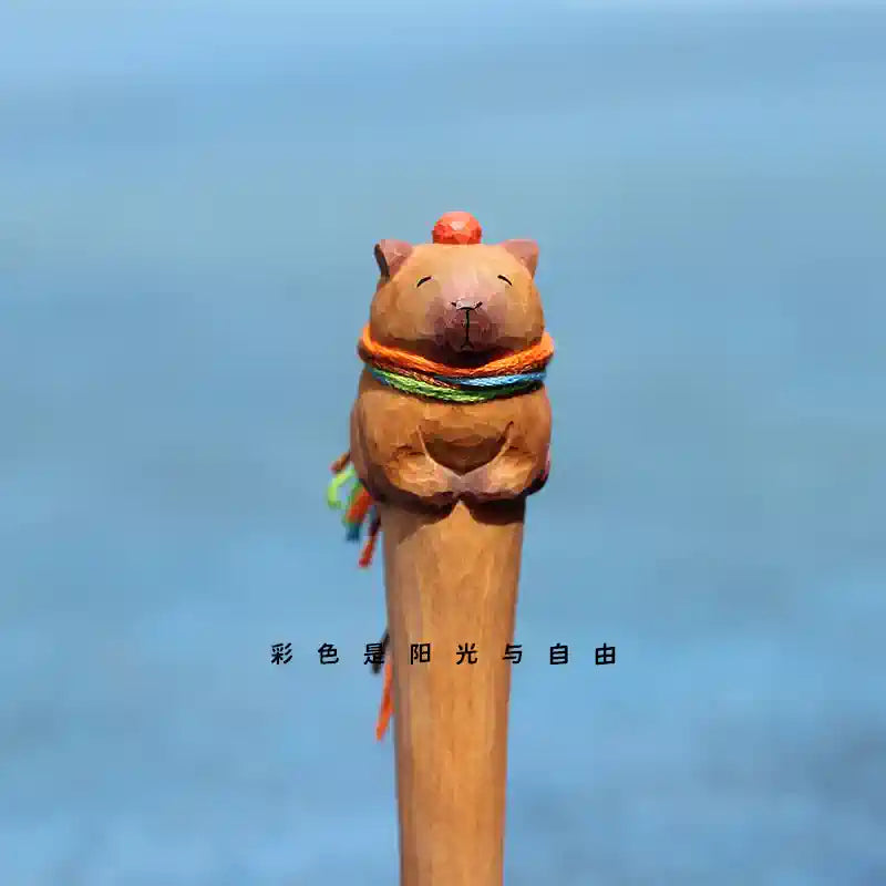 [Stylo gel] Stylo étrange créatif capybara sculpture sur bois stylo animal ornements de bureau stylo gel cadeau créatif