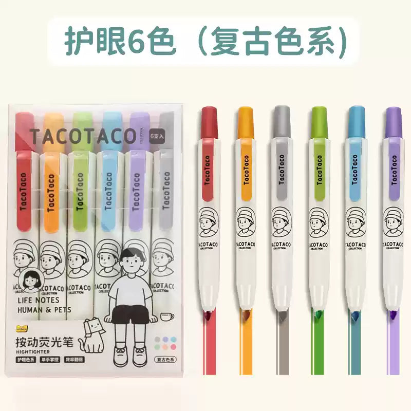 [Surligneur Surligneur] Ensemble de 6 surligneurs à bouton-poussoir co-marqués TacoTaco