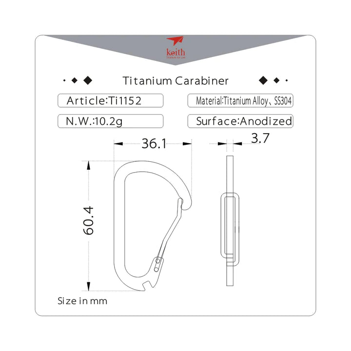 这款登山扣由纯钛制成,没有衬里和优质涂层。它无味,无味,无毒。最初专为远足、露营和旅行而设计。钛超轻超强;它对环境友好,生物相容性和细菌抑制作用;它还具有极低的过敏性,并且具有出色的耐腐蚀性。