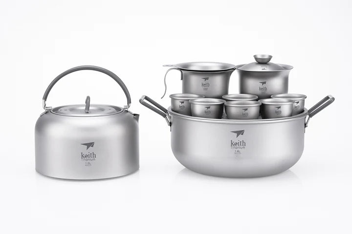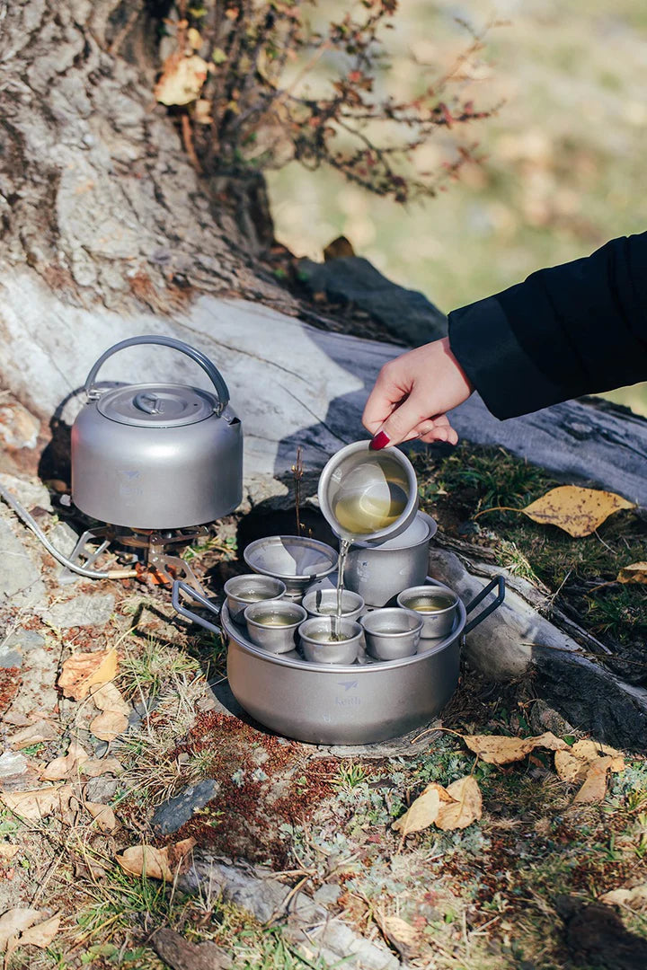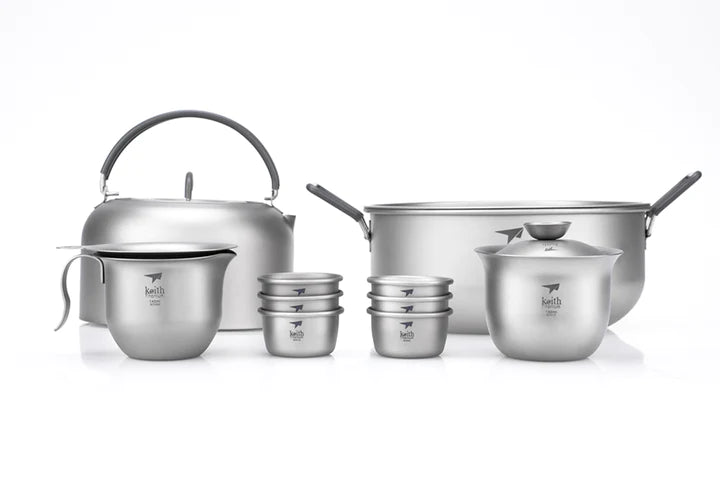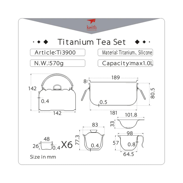 这款茶具由纯钛制成,没有衬里和优质涂层。它无味,无味,无毒,洗碗机安全。最初是为远足,露营和旅行而设计的(空白)也是野餐,应急准备以及房屋,学校和办公室周围的理想选择。钛超轻超强;它对环境友好,生物相容性和细菌抑制作用;它还具有极低的过敏性,并且具有出色的耐腐蚀性
