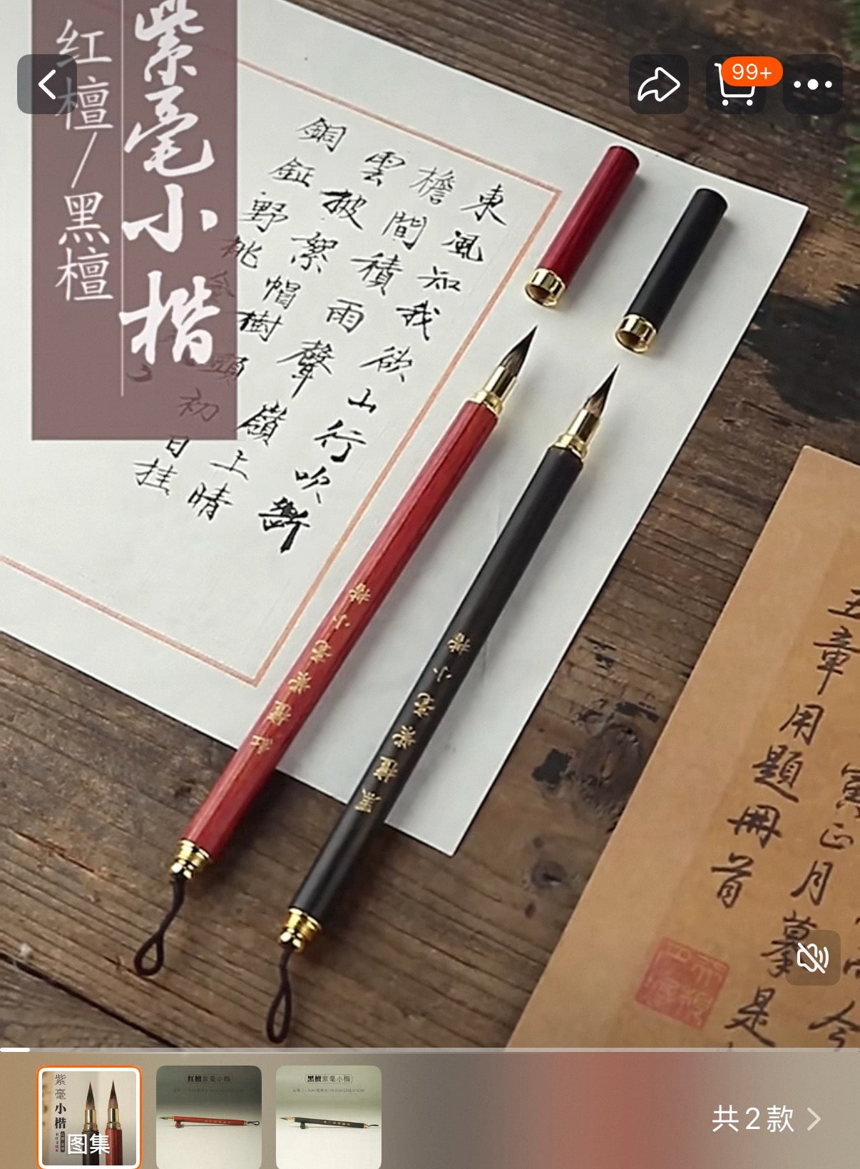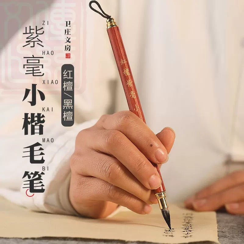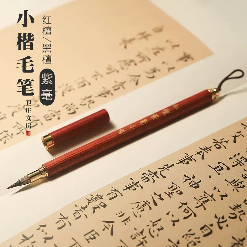 【Pinceau à écrire 小楷毛笔】黑檀紫毫/红檀紫毫带笔帽小狼毫抄经笔小楷毛笔